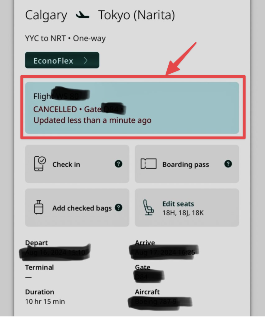 いきなりフライトキャンセルの連絡が届きました。