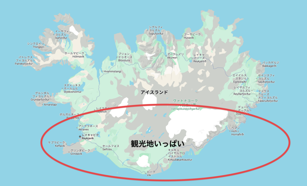 というよりアイスランドの有名観光地は南に密集してるので、、