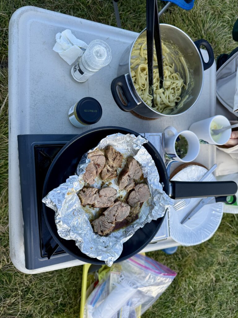 まだ人も少なかったので贅沢にコンロ2つ使わせていただいて調理調理。