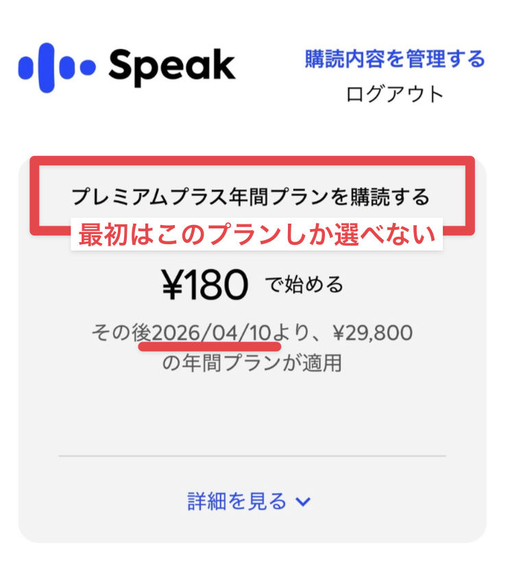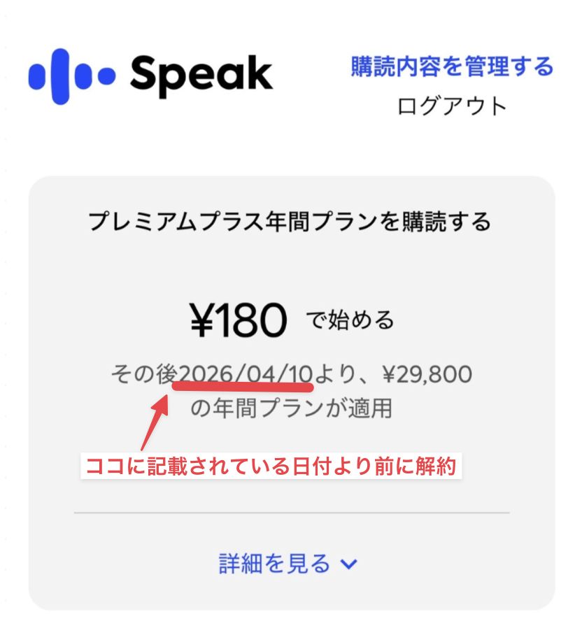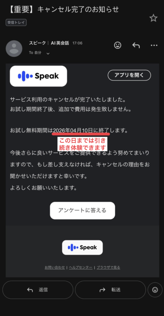 いつ解約しても期間中はスピークが使えるので、不安な方は早めに解約しておくことをおすすめします。