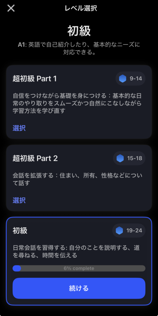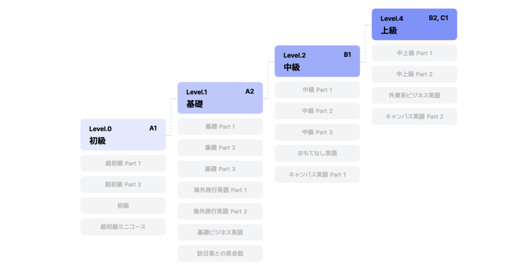 スピークにはCEFRという世界基準を使って、ざっくり以下のようにレベル分けされています。