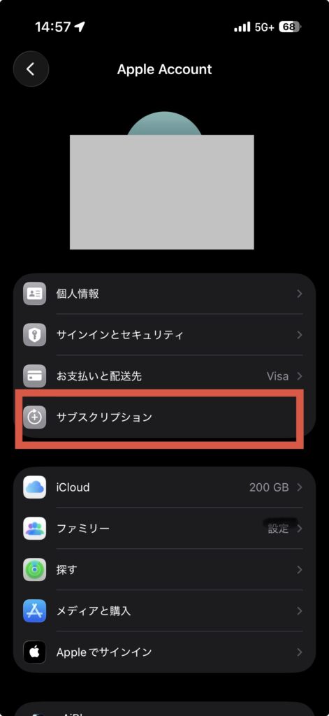 一覧の中から「サブスクリプション」を選択します。
