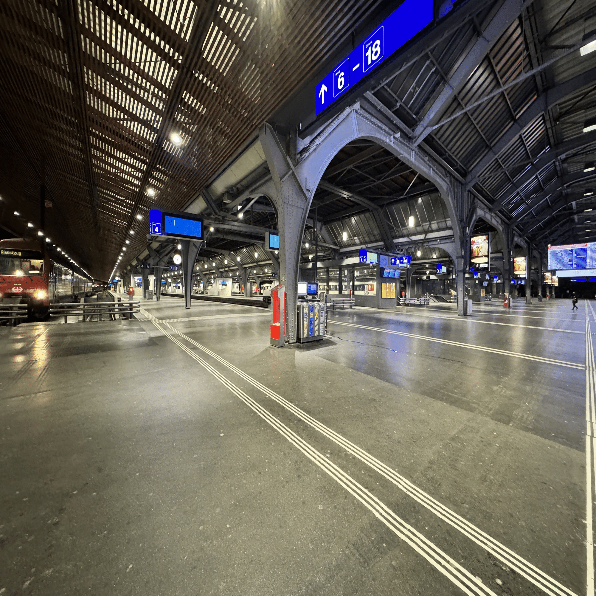 朝のチューリッヒ中央駅(広い、空いてる、最高)