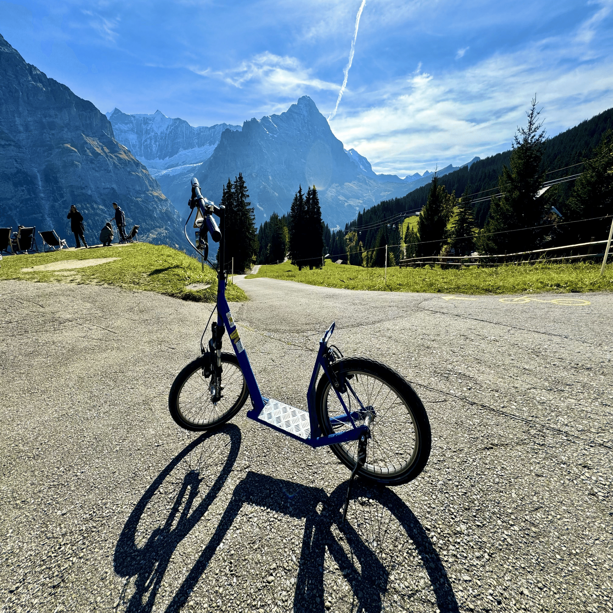 行きはロープウェイでしたが、帰りは「自転車?」「キックボード?」みたいな乗り物を使って下山することにしました。