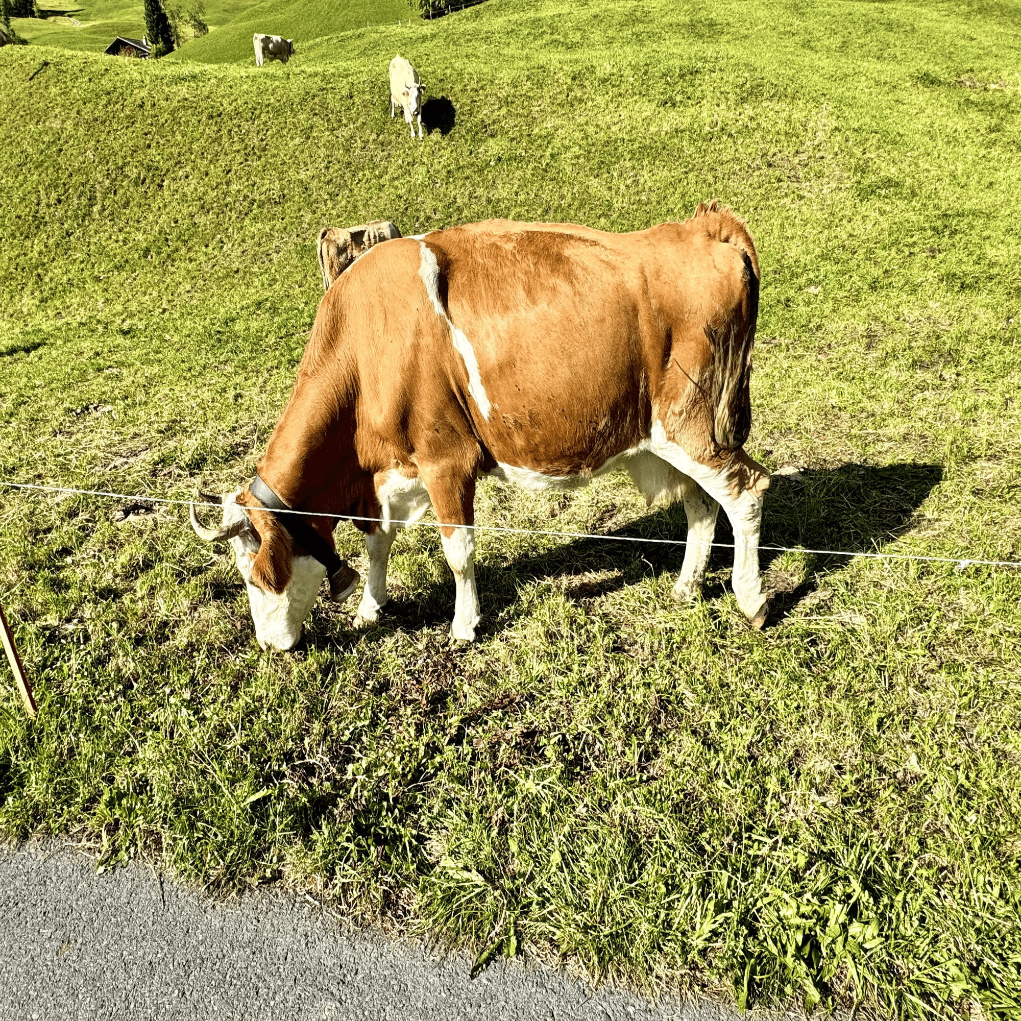 風も気持ち良いし、景色圧巻だし、カウベルの音も心地良い。
